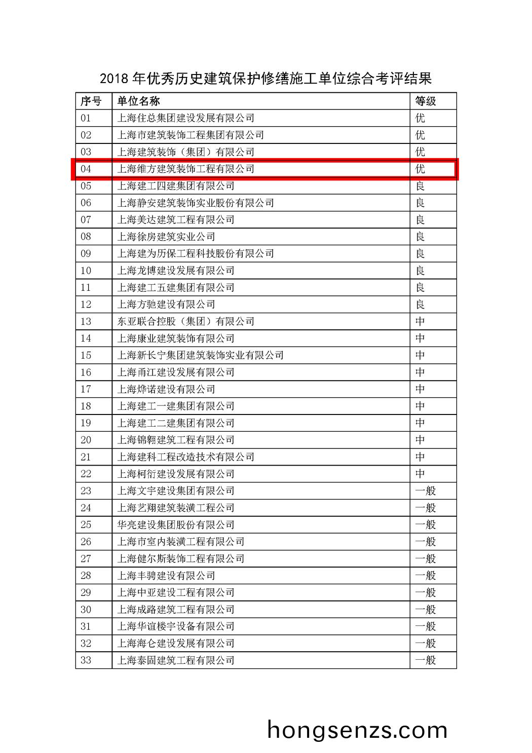 上海維方公司榮穫“2018年優(yōu)秀歷史建築保護(hù)脩繕施工攷評”優(yōu)級單位